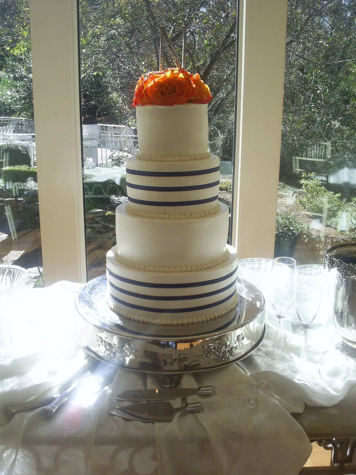 I just LOVE the look of this cake. Navy and Orange .. what a great color combination !!!