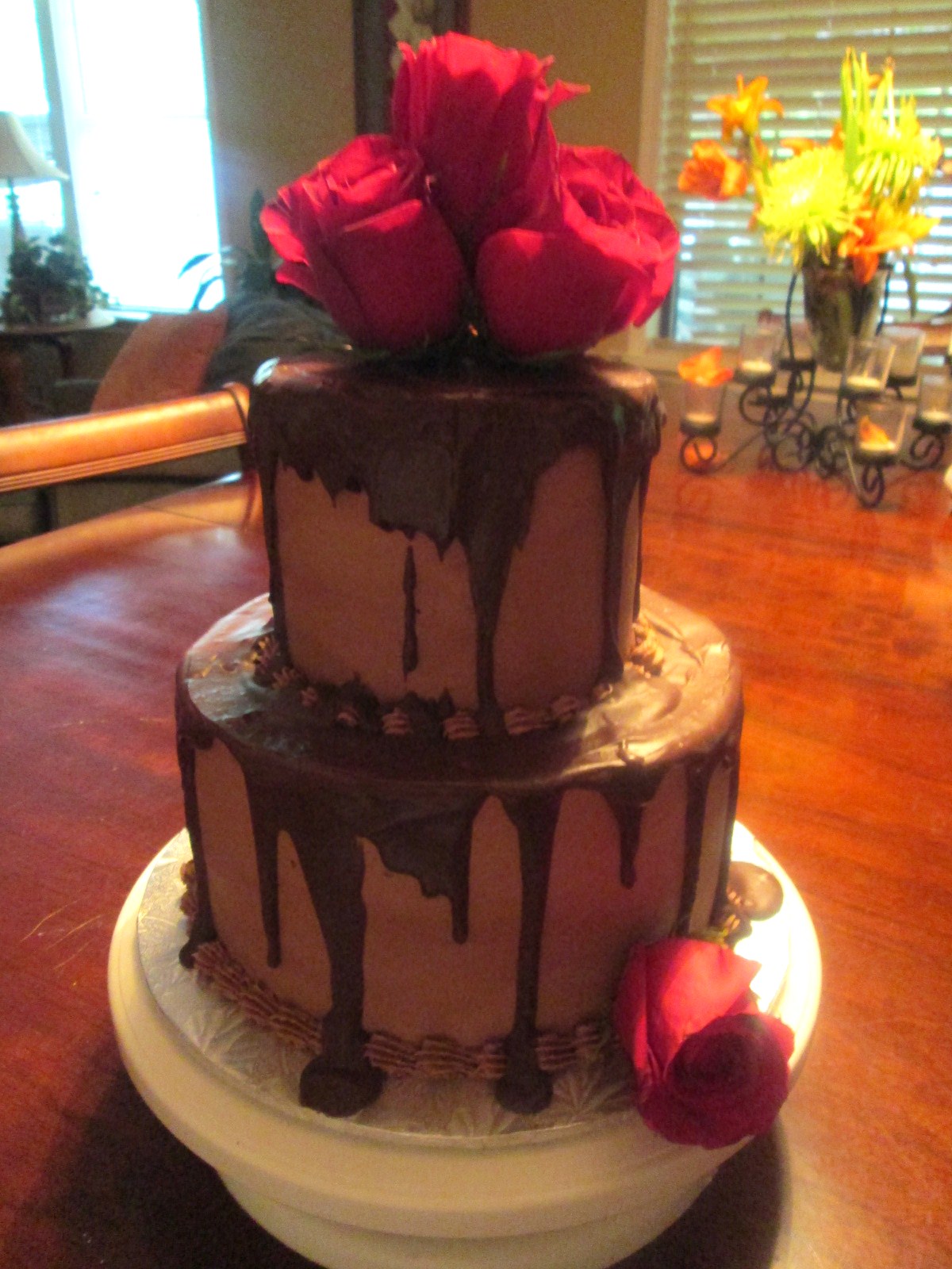 10" - 1/2 Coconut; 1/2 Chocolate cake filled w/ Strawberry Cream Cheese